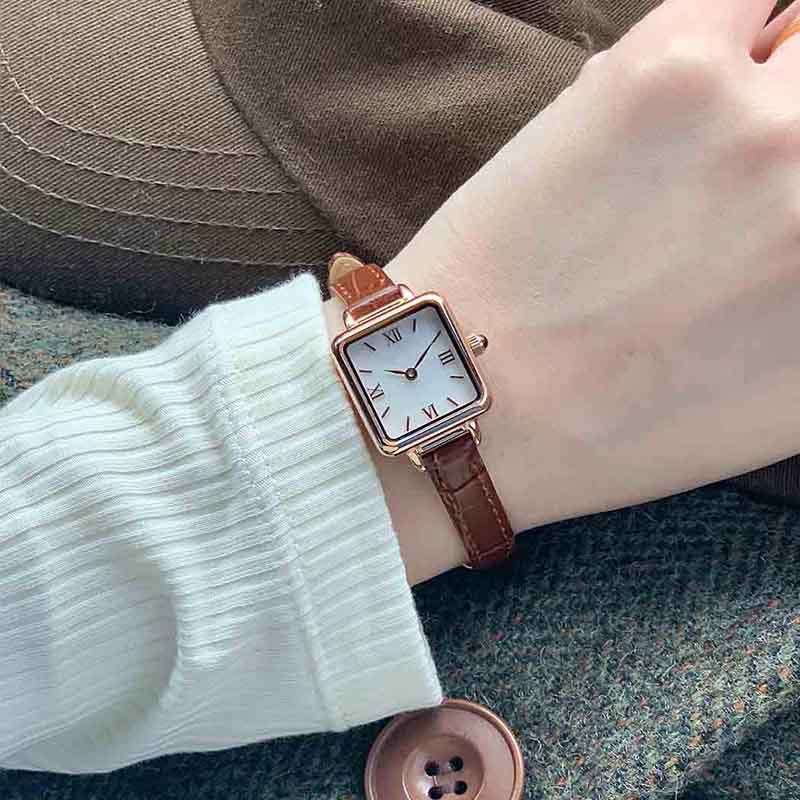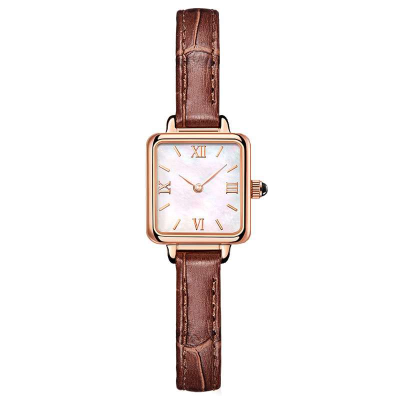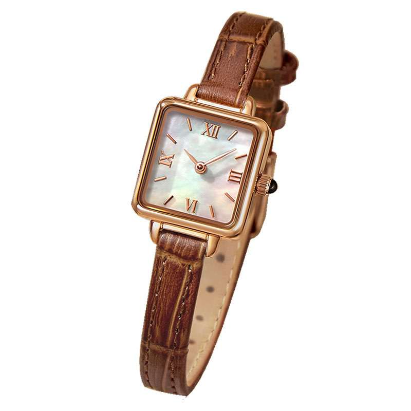 The distinct angles of square watches are both chic and cool. Square watches were made popular by Louis Cartier and stand the test of time. We are a women’s square watch case manufacturer and can customize square watches for women in a variety of styles. In this case with mother of pearl dial and roman numeral hour markers.